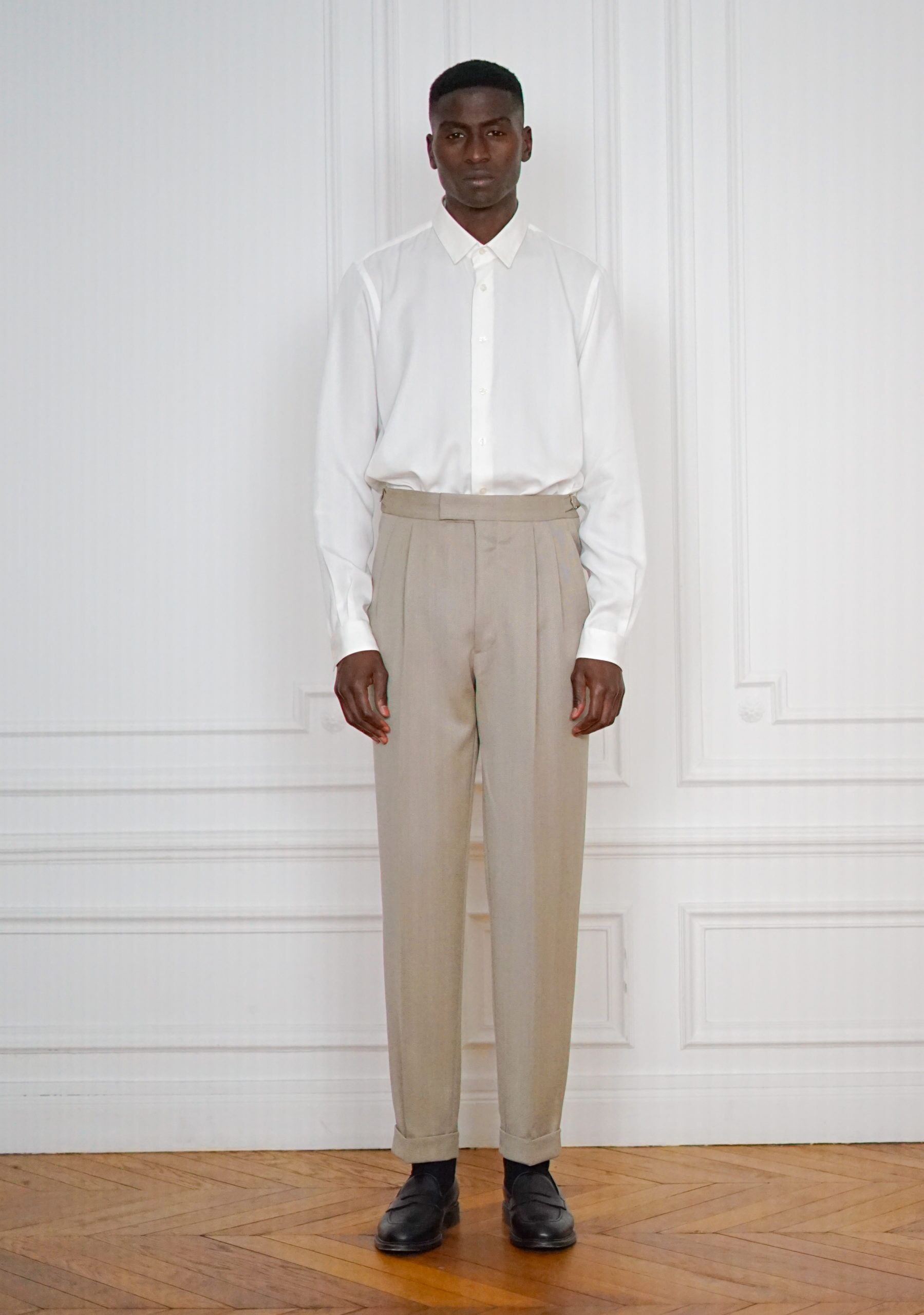 PANTALON LARGE DOUBLE PINCES WHIPCORD BEIGE